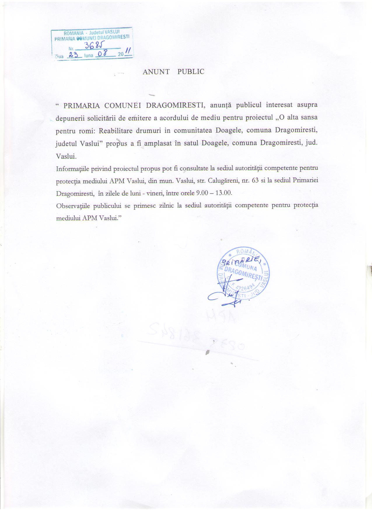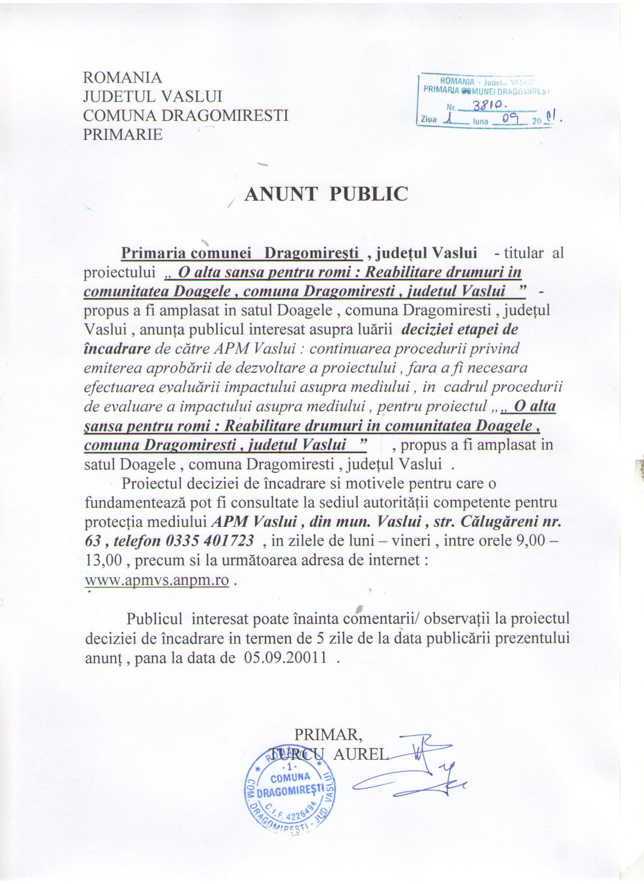 June 21, 2025 - In Uncategorized By dra Comment off Anunțuri publice Toggle Title Date pdf Erata nr 1 la anunt de intentie 3598 22 07 2016 ( pdf, 561 KB ) (636 downloads) 10 Aug 2016 Document Anunt promovare in grad ( doc, 89 KB ) (669 downloads) 03 Aug 2016 pdf Anunt proiect POCU 3598 din 2016 ( pdf, 5.87 MB ) (811 downloads) 22 Jul 2016 pdf Invitatie sedinta constituire Consiliul Local ( pdf, 3.33 MB ) (804 downloads) 23 Jun 2016 pdf Anunt consultare versiune PUG ( pdf, 407 KB ) (678 downloads) 17 Sep 2015 Default Anunt lansare sesiuni primire cereri proiecte GAL ( pdf, 1.20 MB ) (1026 downloads) 21 Aug 2014 Default ANUNT APM etapa incadrare ModernizareTarg Radeni ( pdf, 848 KB ) (900 downloads) 01 Oct 2013 Default Anunt APM Modernizare targ ( pdf, 377 KB ) (648 downloads) 25 Sep 2013 Default Anunt licitatie teren ( pdf, 116 KB ) (704 downloads) 04 Jul 2013 Default Anunt elaborare PUZ 2013 ( pdf, 154 KB ) (724 downloads) 01 Apr 2013 Default Anunt public de intentie ( pdf, 843 KB ) (680 downloads) 28 Mar 2012 Default Anunt public proiectare O alta sansa pentru romi ( jpg, 124 KB ) (722 downloads) 06 Jan 2012 Default Anunt public O alta sansa pentru romi – Reabilitare drum ( jpg, 265 KB ) (742 downloads) 02 Sep 2011 Default Anunt public APM Proiect O alta sansa pentru romi ( jpg, 134 KB ) (720 downloads) 23 Aug 2011 «12…678 Previous Transparență decizională Next Asistență socială